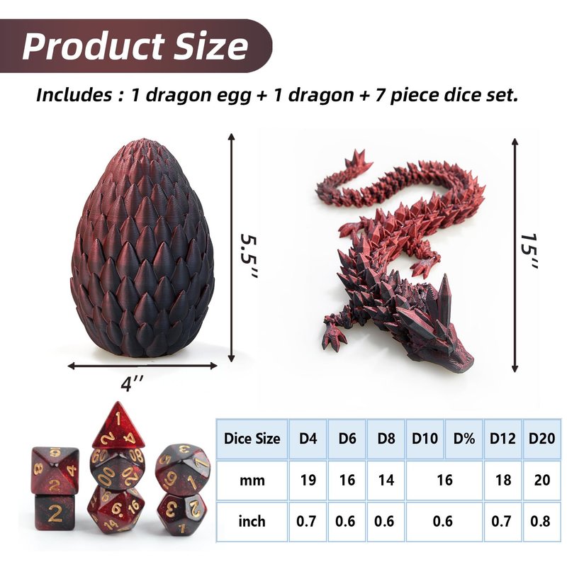 DND Dice Set (7 Pieces) and 3D Printed Dragon Egg,Fidget Toys,Surprise Dragon Egg and Polyhedral Dice Set with Gift Box,Playing Game with Dragon Eggs for RPG DND MTG