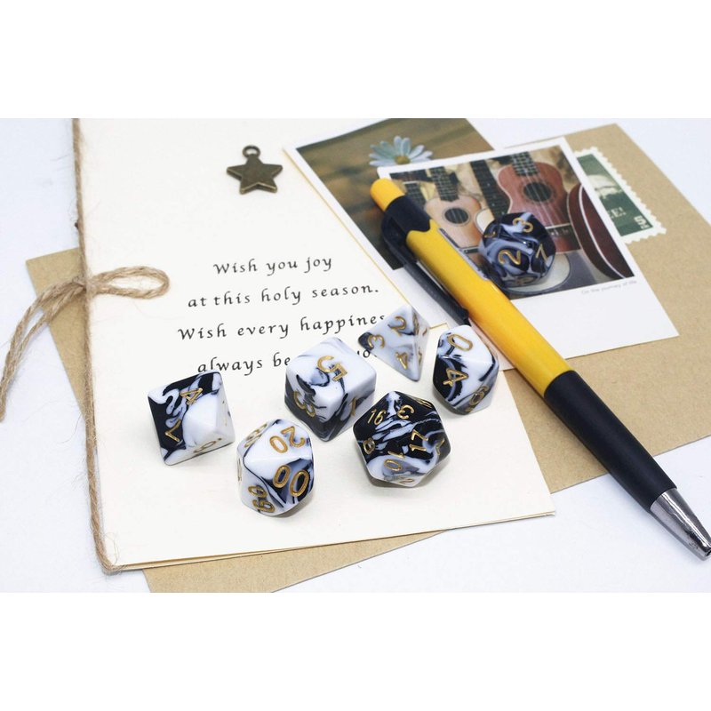 DND Dice Set Black & White Marble RPG Polyhedral Dice Fit Dungeons and Dragons(D&D) Pathfinder MTG Tabletop Role Playing Game 7-Die Dice Set