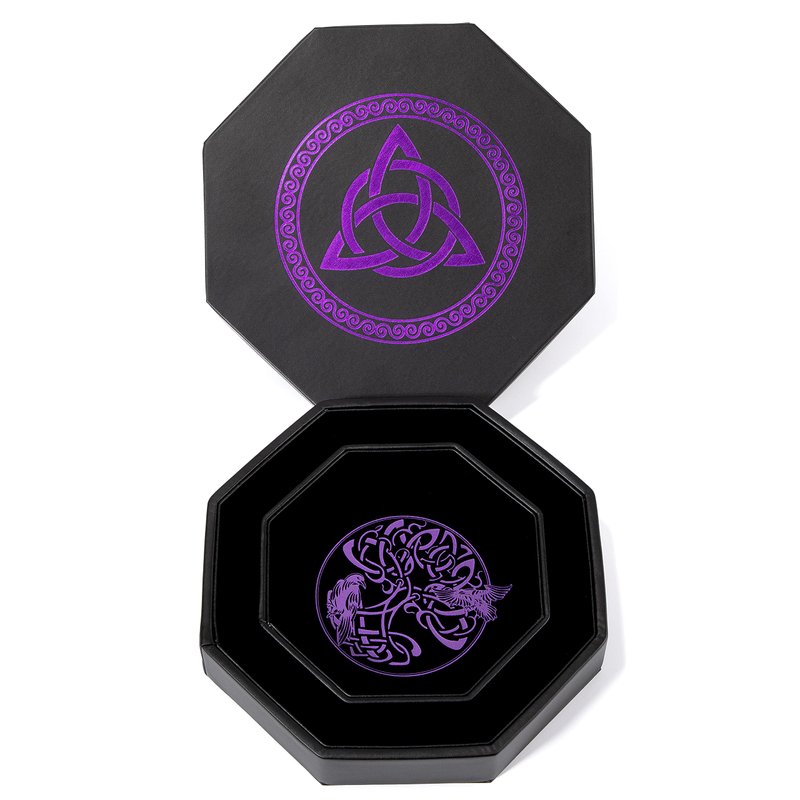 - Stunning Detail & Artwork - The Celtic Trinity Knot (Triquetra) and World Tree artwork are unique to Soar Forge, and feature a purple design on a high-quality black PU leather lid that shimmers with the light at certain angles making it really eye-catching. The inner tray world tree is similarly detailed and elegant.