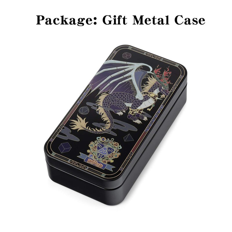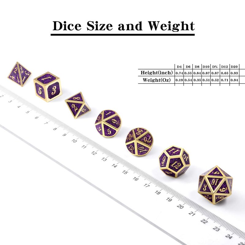 - DND Metal Dice Set:One set dice total 7 pcs including D4, D6, D8, D10, D12, D20 and D%.