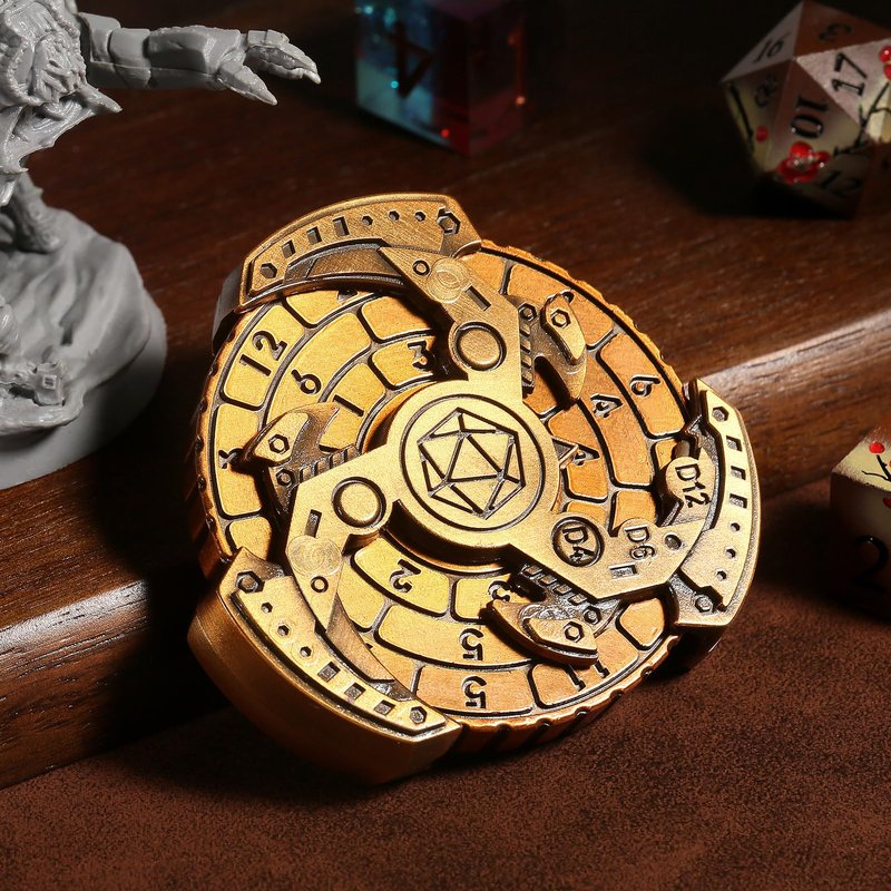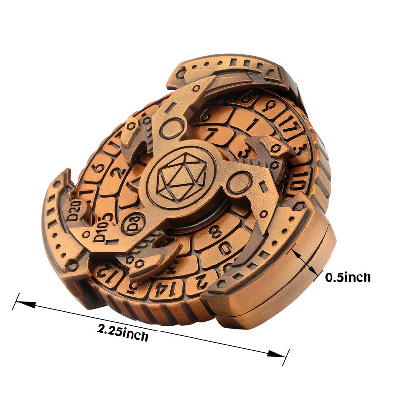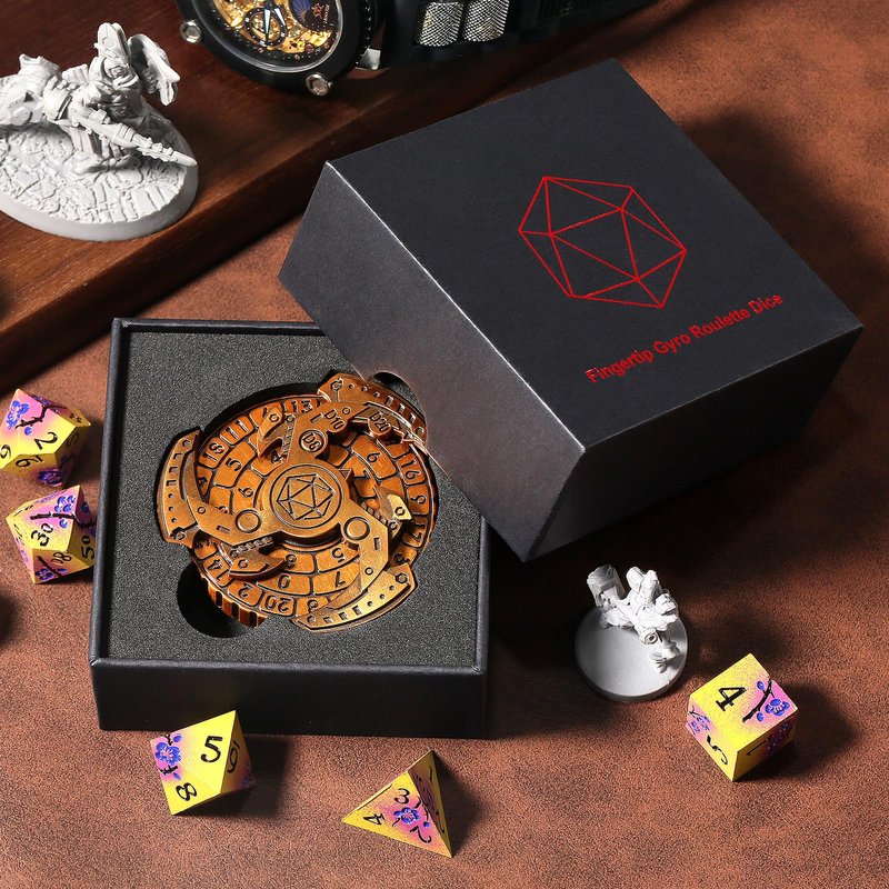DNDND Metal Dice Roulette 7 in 1,All in 1 D&D Spinner Metal Dice with Gorgeous Gift Box for Dungeons and Dragon and Tabletop Game (Brass)