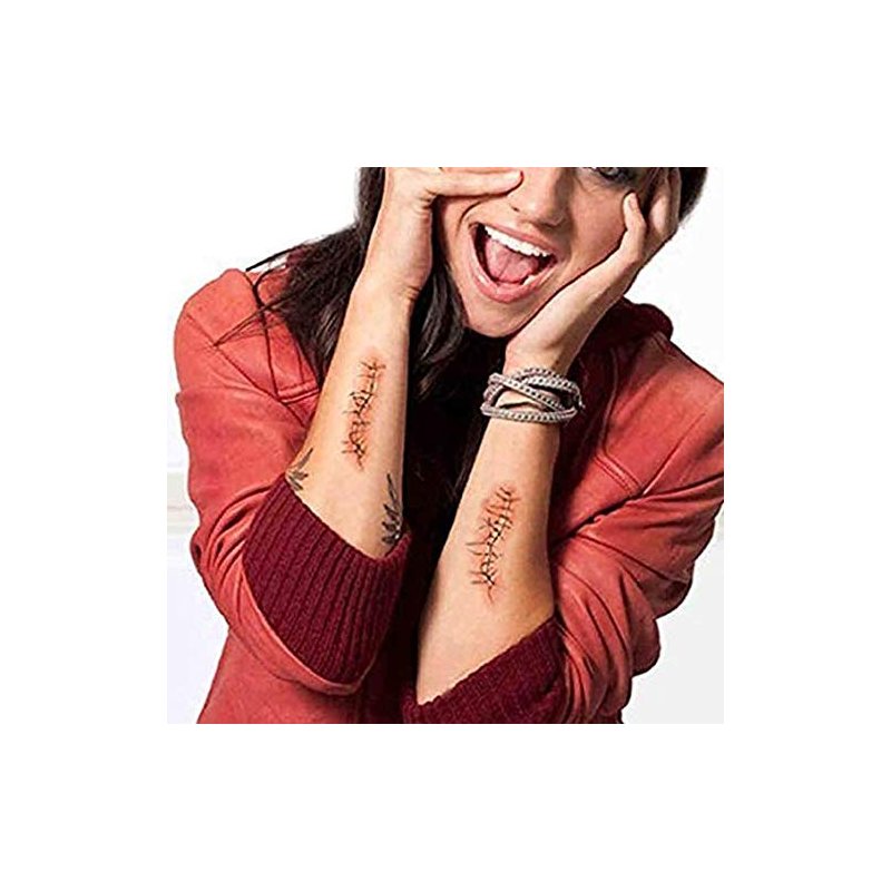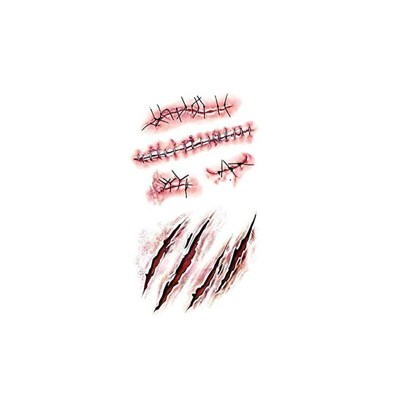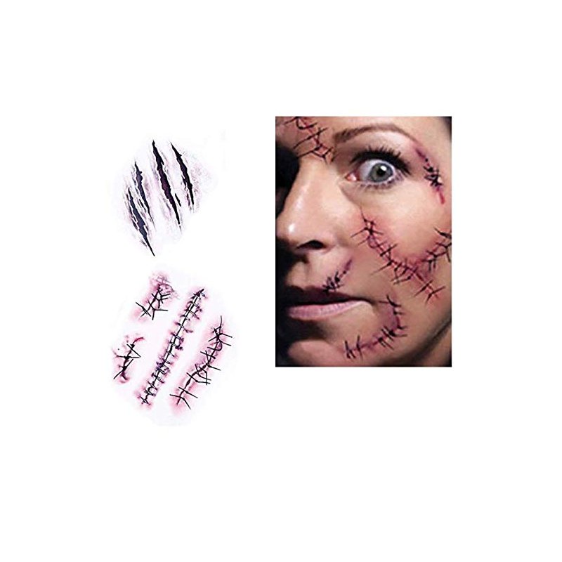 - Halloween fake scars, fake injury, fake blood temporary tattoos are the best temptation items for Halloween parties, horror parties, zombie makeup, masquerade, masquerade, funny parties, etc.