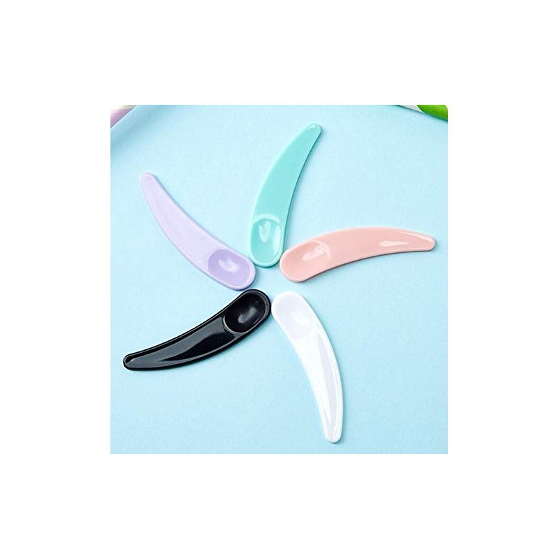 DNHCLL 100PCS Mixed Colors Disposable Mini Curved Cosmetic Spatula Scoop Makeup Mask Spatula Plastic Spoon,Small Makeup Scoop for Mixing and Sampling