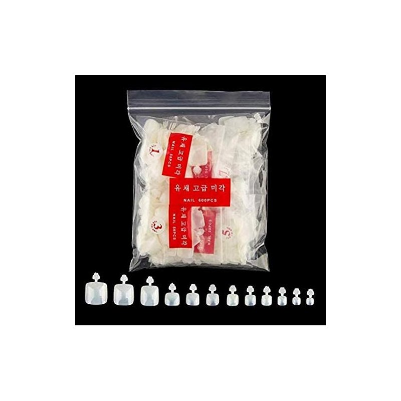- 600pcs acrylic fake nails offers 12 different sizes with 50 nails of each size that fit most toes. Each size is separately packed in pre-numbered bag.