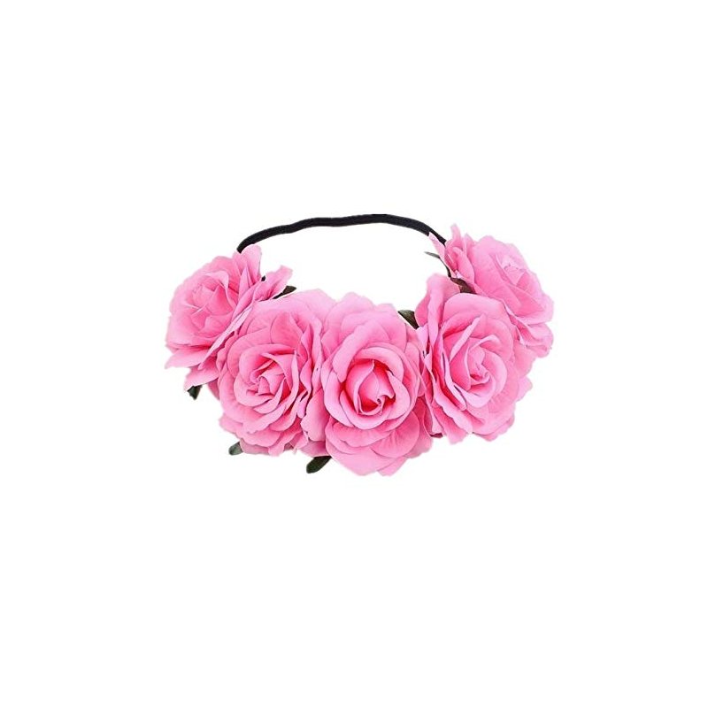 DNHCLL Rose Flower Crown Headband (Pink) for Women Girl - Handmade Polyester Hair Accessory with Elastic Bands - Perfect for Weddings, Festivals, Photoshoots, and Everyday Wear