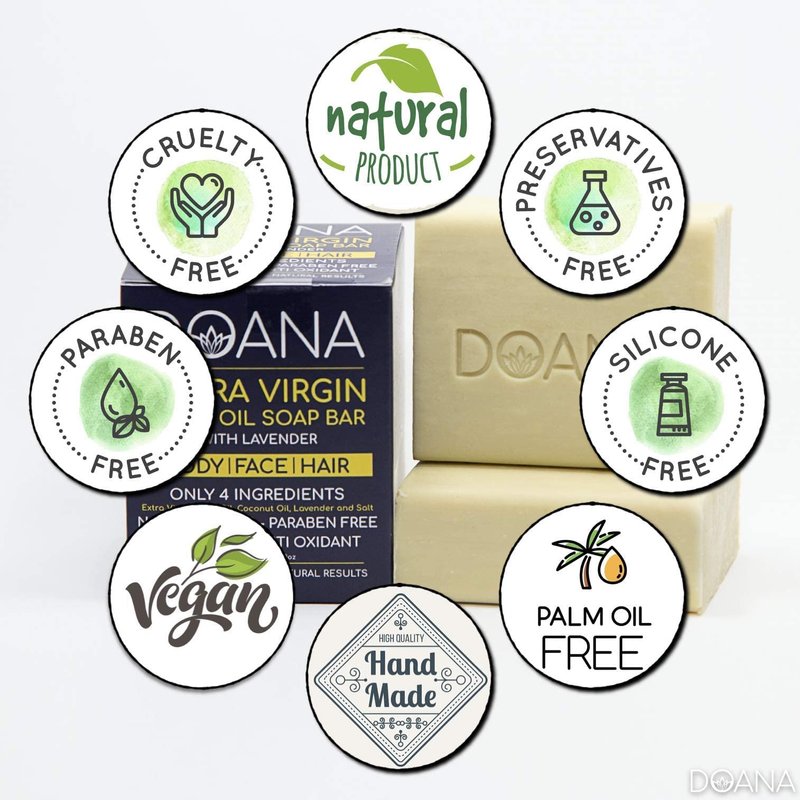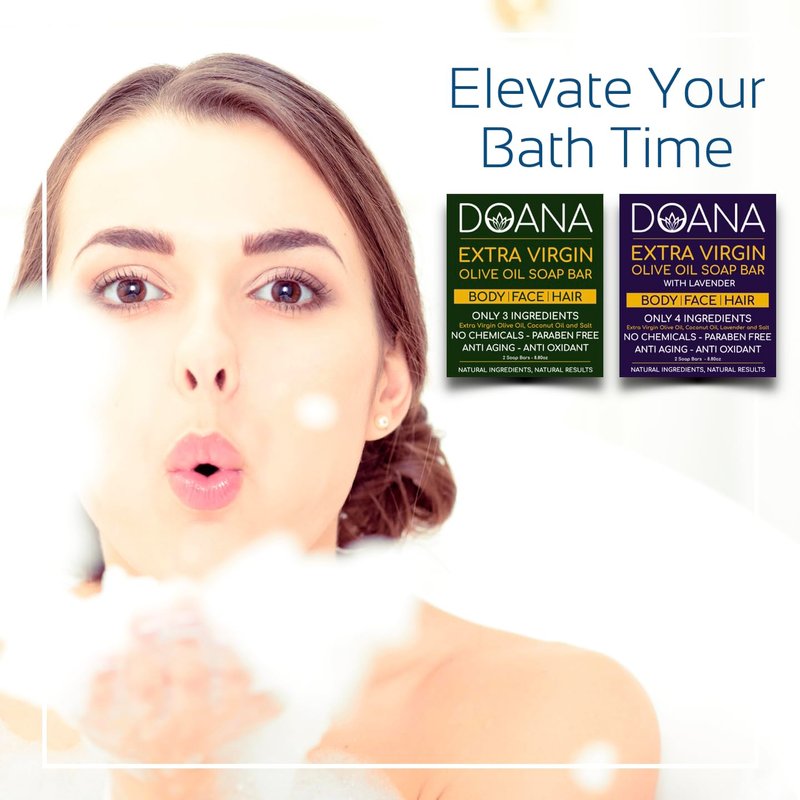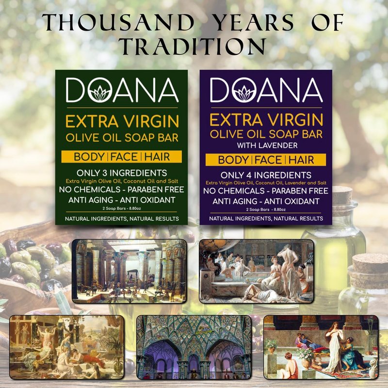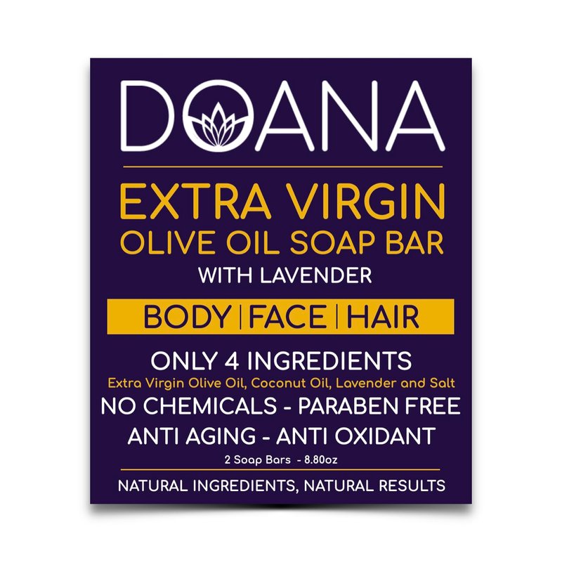 Doana Extra Virgin Olive Oil Soap With LAVENDER OIL, Artisan, Cold Processed With Coconut Oil, Facial & Body Cleansing, 8.8oz(Pack of 2)