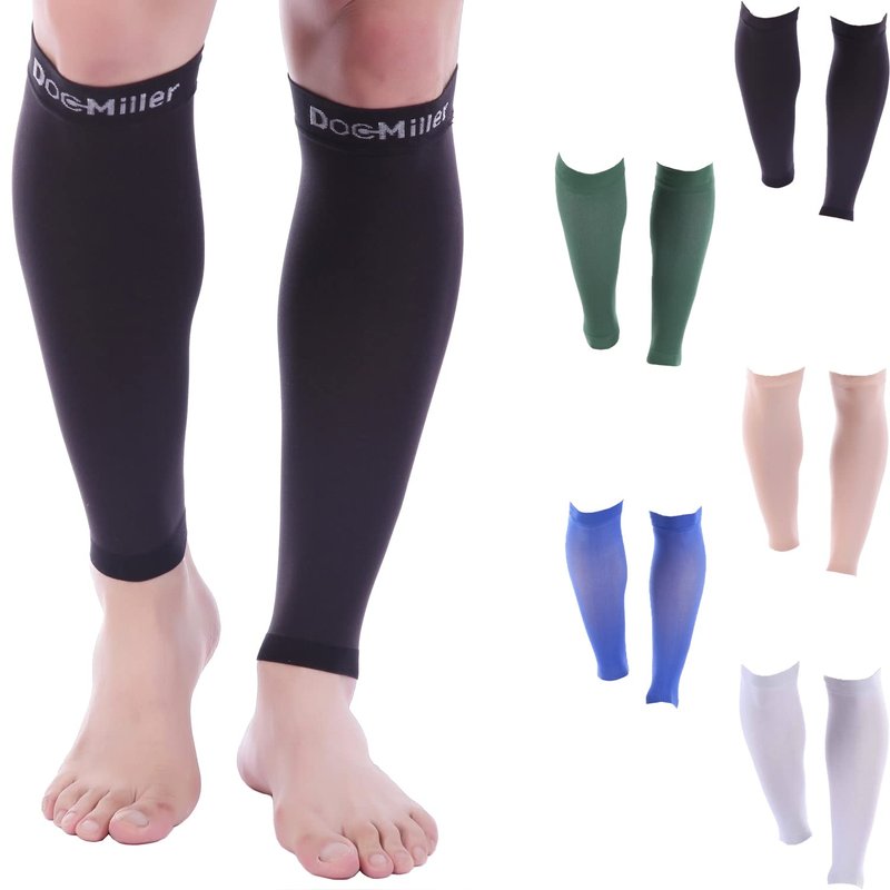 - Doc Miller compression calf sleeves men 30-40 mmHg provides targeted support to ligaments, tendons and calves, speed up the recovery from muscle strain, leg cramps, edema and varicose veins.