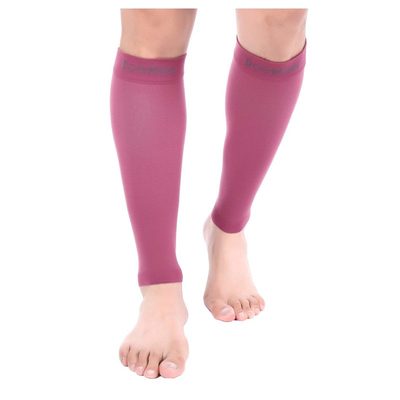 Doc Miller Calf Compression Sleeve Men and Women - 15-20mmHg Shin Splint Compression Sleeve Recover Varicose Veins, Torn Calf and Pain Relief - 1 Pair Calf Sleeves Maroon Color - Medium Size