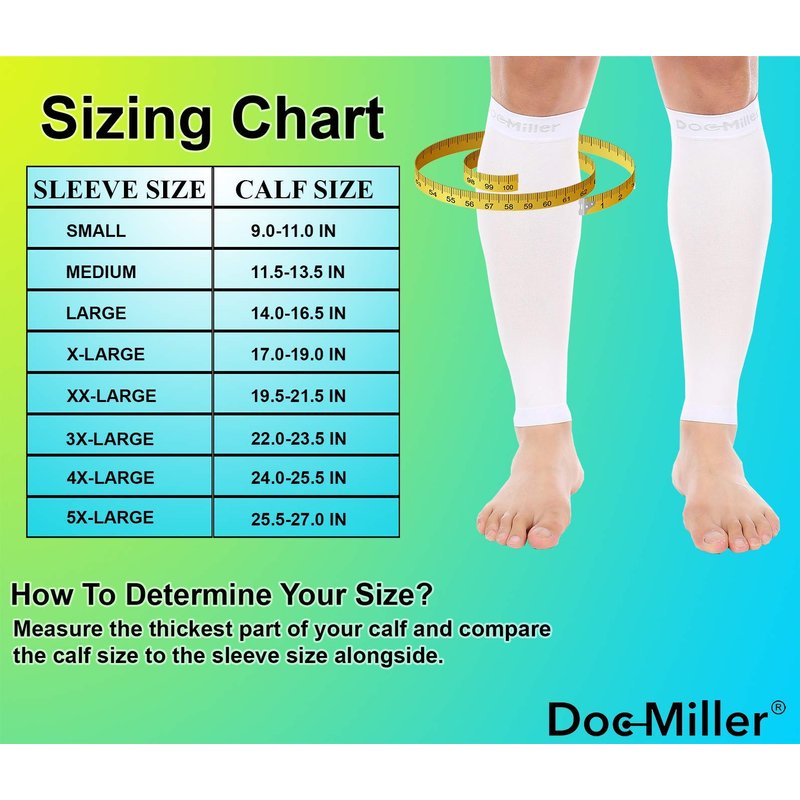 - Get rid of pain: Doc Miller calf sleeves for men relieve leg cramps, shin splints, varicose veins. The calf compression sleeve men helps with blood circulation in your legs and may aid sore muscles.