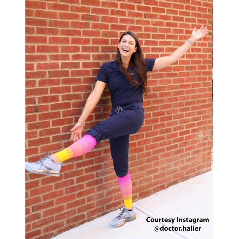 Doc Miller Calf Compression Sleeve Men and Women 20-30 mmHg, Shin Splint Compression Sleeve for Varicose Veins and Maternity 1 Pair ( Pink Peach Yellow, Small)