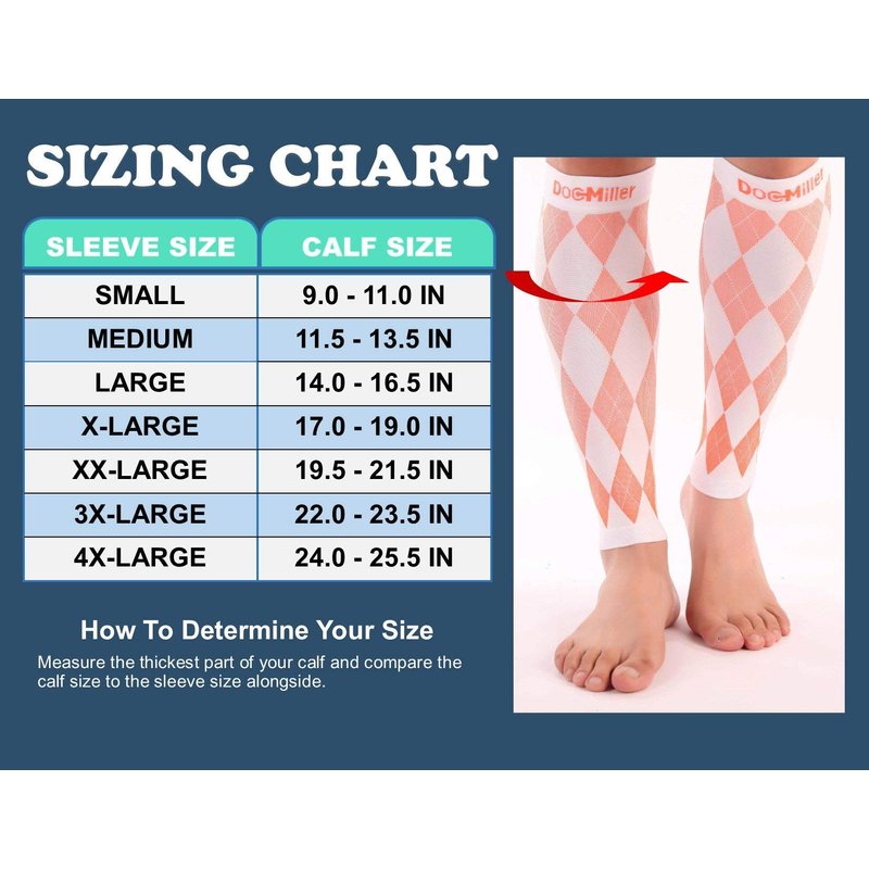 - Get rid of pain: Doc Miller calf sleeves for men relieve leg cramps, shin splints, varicose veins. The calf compression sleeve men helps with blood circulation in your legs and may aid sore muscles.