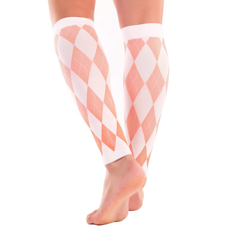 Doc Miller Calf Compression Sleeve Men and Women - 20-30mmHg Shin Splint Compression Sleeve Recover Varicose Veins, Torn Calf and Pain Relief - 1 Pair Calf Sleeves White and Orange - Medium Size