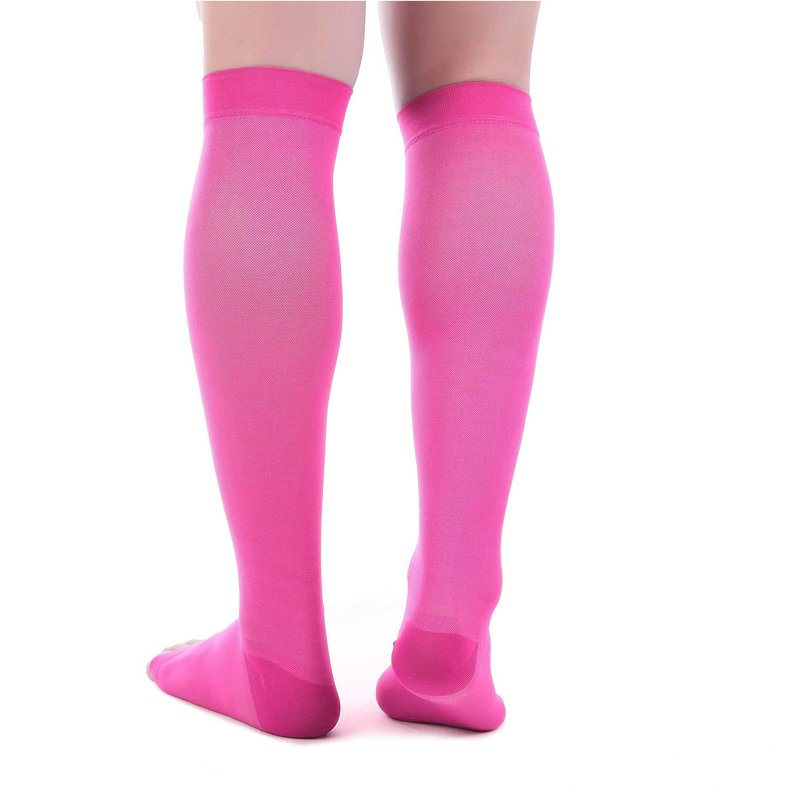 - The open toe compression socks women provide relief from aching calves, leg cramps, edema, shin splints or varicose veins. The graduated compression boosts circulation in your legs & reduce muscle soreness.