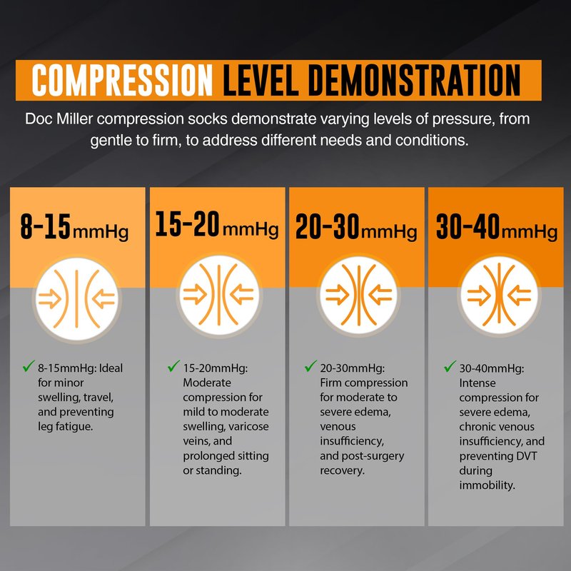 - 20-30 mmHg Compression: Provides targeted support to promote circulation and relieve leg discomfort