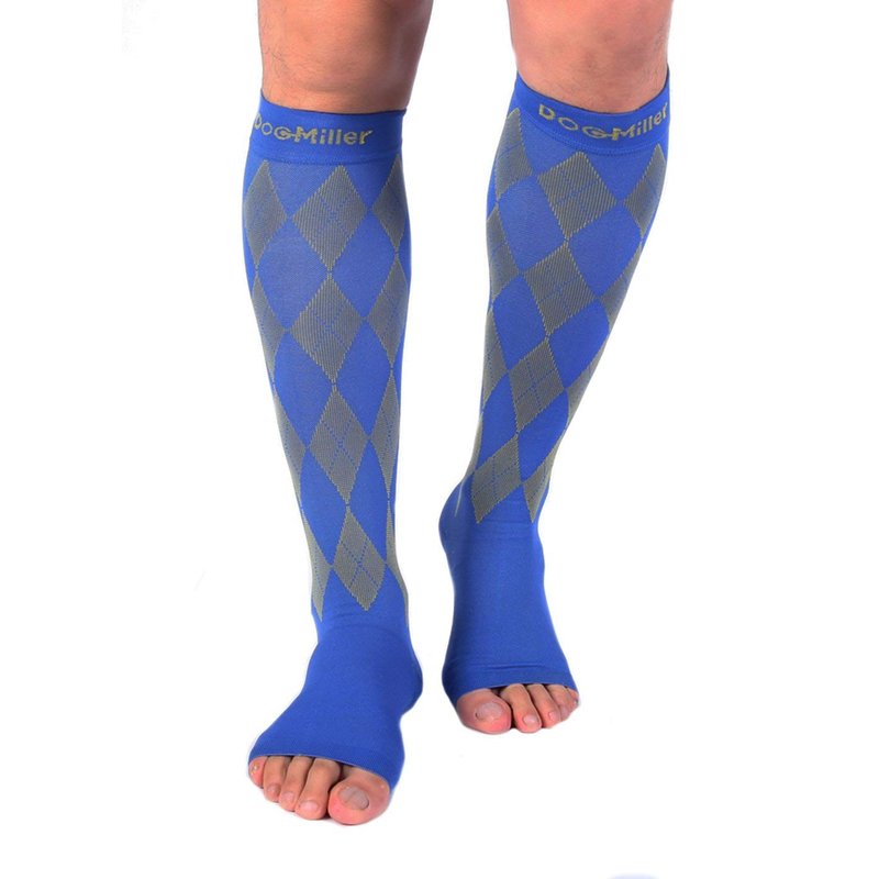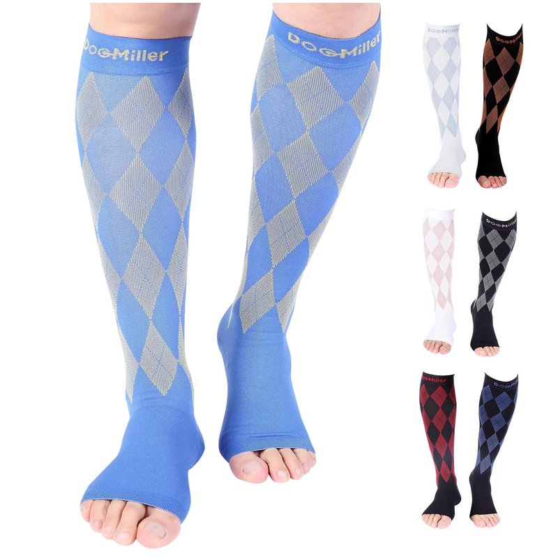 Doc Miller Open Toe Compression Socks for Men & Women, 20-30mmHg, Toeless Socks, Support Circulation, Shin Splints, Calf Recovery, Medical Grade, Knee High, Argyle Pattern , 1 Pair, Small