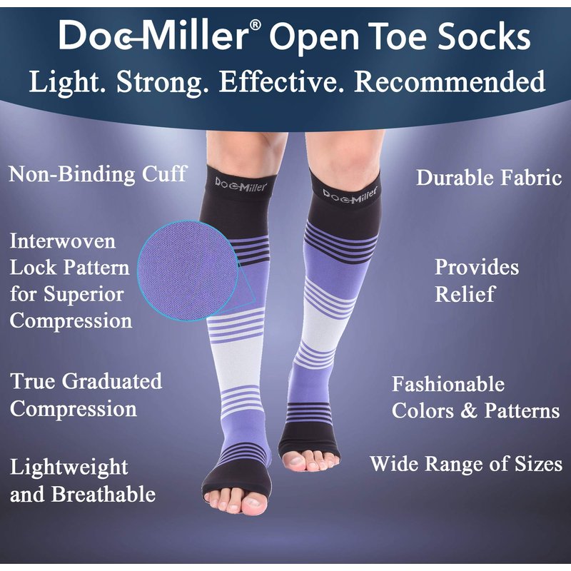 Doc Miller Open Toe Compression Socks Women and Men 20-30mmHg, Toeless Compression Socks Women, Support Shin Splints, Calf Recovery, Varicose Veins, 1 Pair