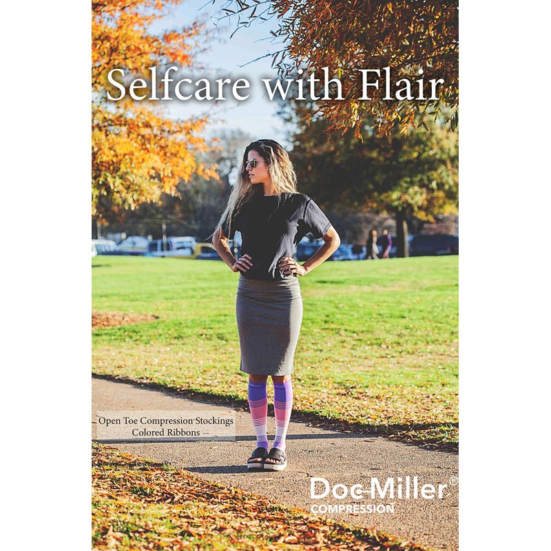 Doc Miller Toeless Compression Socks for Women and Men are designed for recovery from calf, shin splint, spider and varicose veins. These open toe compression socks for men and women may provide pain relief for sore muscles, plantar fasciitis and edema. We are using premium quality washable Nylon material to give you medical grade compression socks for women and men, a perfect use in pregnancy, with sportswear for protection and strength and for those who have to stand long on the job. These open toe socks have sleek design, which makes them wearable for daily use or for any special occasion. Select from a wide range of colors and compression strengths. At Doc Miller we always strive to provide you with great products that bring the required compression, pain relief, required results and comfort you are looking for. We have a wide variety of compression socks - you can get full length compression socks, thigh high stocking, toeless compression sleeves, elbow braces, ankle sleeves, and calf sleeves in different colors, size, plus size, compression and patterns. Get the open toe 20-30mmHg compression socks for the ultimate relief.