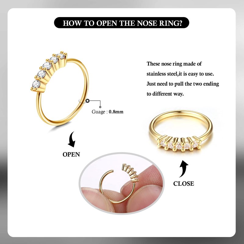 - Nose Rings Material: These nose rings for women are made of surgical stainless steel, lead-free and nickel-free, highly polished, smooth surface, hypoallergenic safe and comfortable for long time wear.