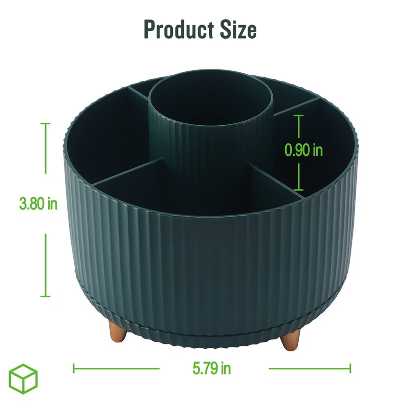 DOCMON Pencil Holder for Desk, 360 Degree Rotating Pen Holder Desk Organizer, Spinning Makeup Brush Holder, 5 Slots Pen Cup for School, Office, Home, Art Supply (Dark green)