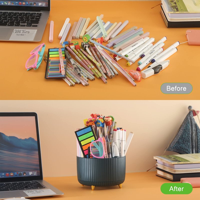 - 【360°rotating desk organizer】The pencil holder rotates very smoothly, convenient for storing or take out the things you want, keeps your table organized and tidy.