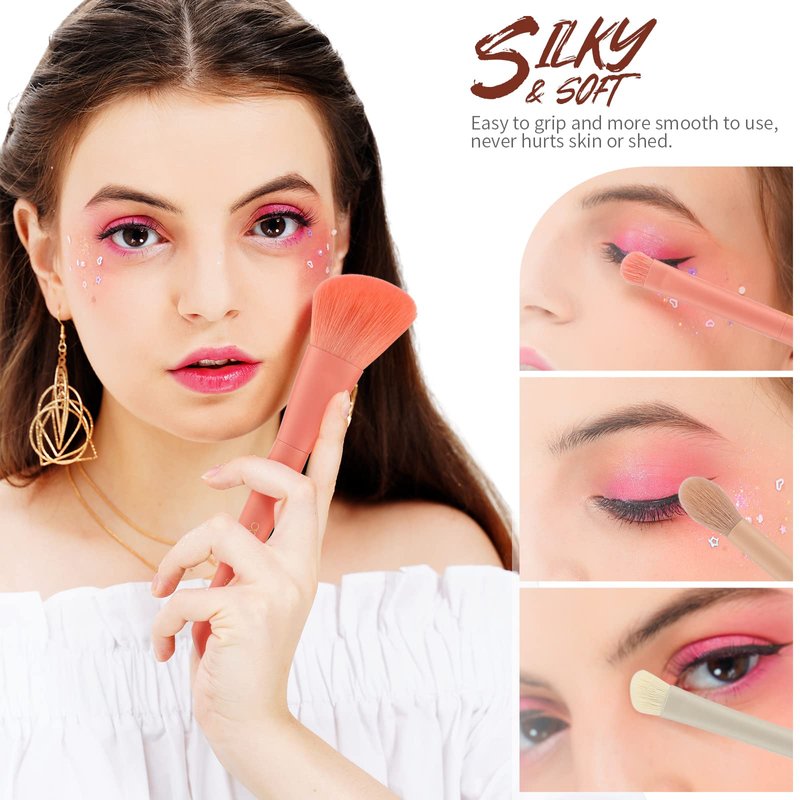 - ❤️PREMIUM MATERIALS: Designed and handcrafted by our industry experts, this brush set features fiber synthetic bristles, 100 % vegan, that are cruelty-free, fluffy, soft, and hypoallergenic, making them perfect for sensitive skin. High-density fiber bristles reduce shedding and ensure maximum brush life. The handle is made of lightweight birch wood, which is durable, ergonomically designed, and has a non-slip grip to ensure you apply makeup accurately every time.