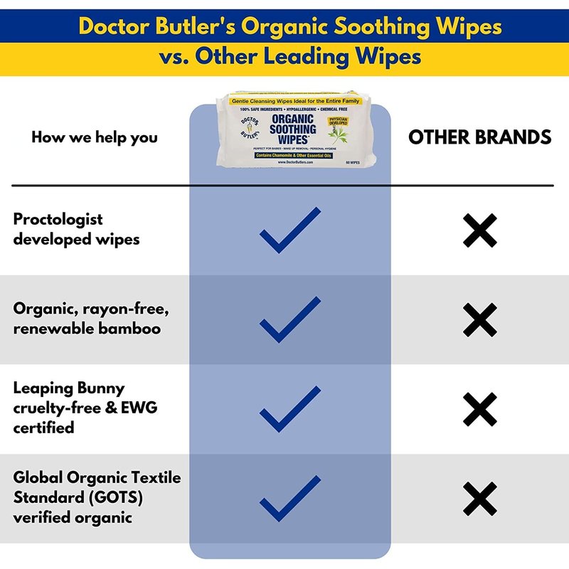 - GENTLE ON SKIN: Doctor Butler’s soothing, personal cleansing wipes are physician-developed and gentle enough for the whole family. Made with a doctor developed formula, they’re safe on dry sensitive skin and gentle enough for those with hemorrhoids looking for a convenient way to prep for treatment.