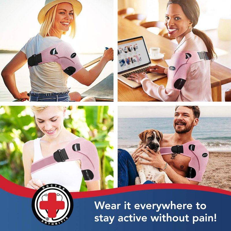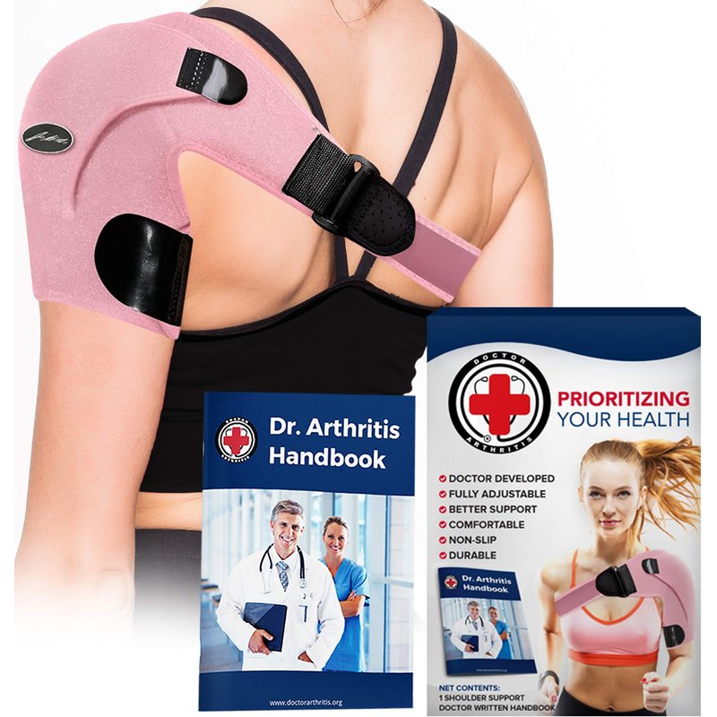 Doctor Developed Shoulder Support/Shoulder Strap/Shoulder Brace [Single] & Doctor Written Handbook - Relief for Shoulder Injuries, for both left & right (Pink)
