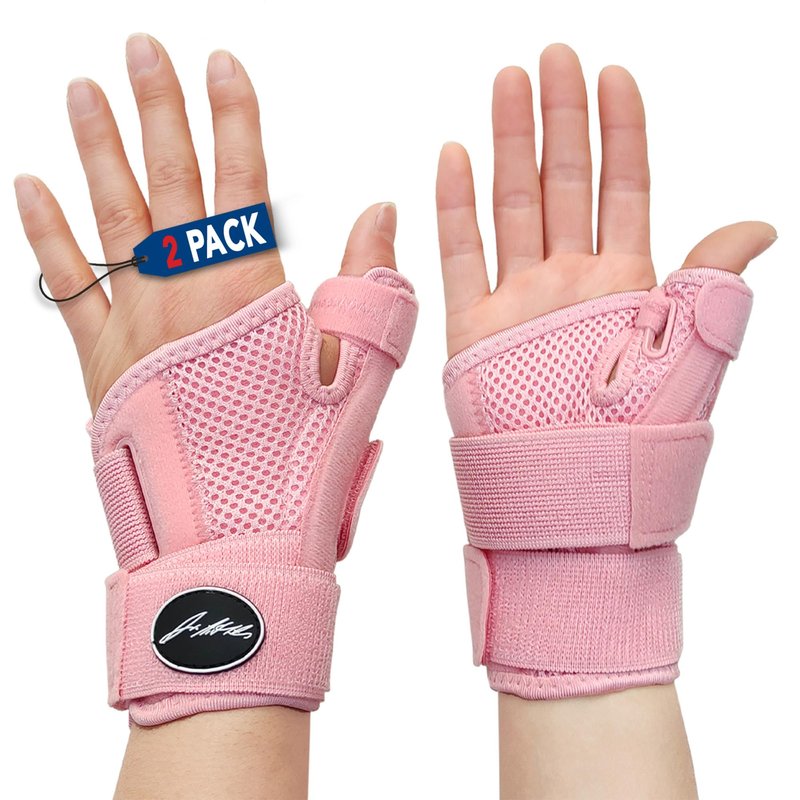 Doctor Developed Thumb Brace for Arthritis/Thumb Splint/Thumb Support for Men & Women - Trigger Thumb Spica Splint - Thumb Splint for Right Hand/Left- FDA Medical Device & Handbook (Pink, Pair)