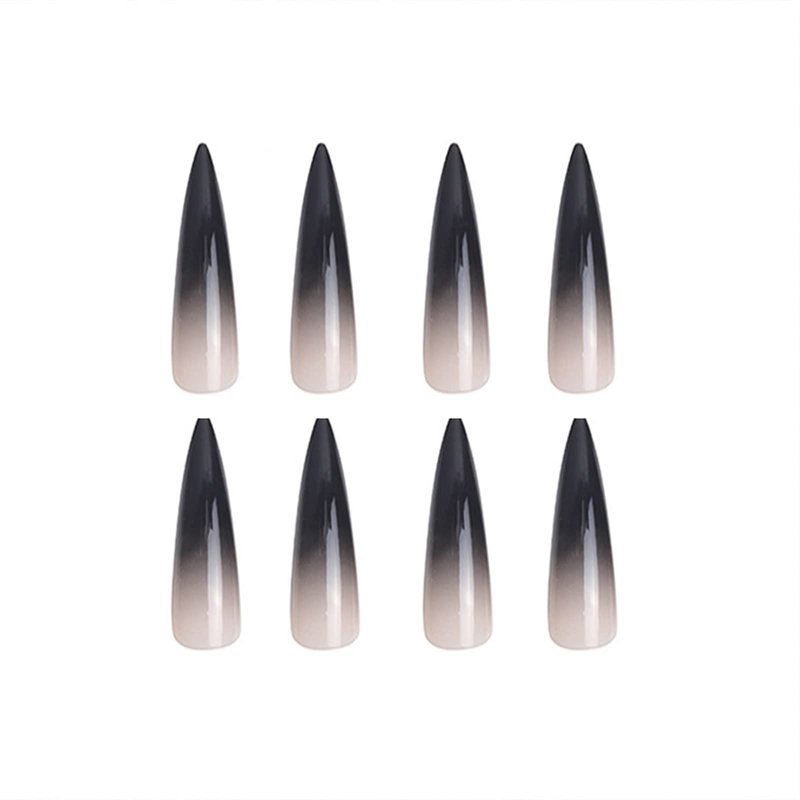 DOCVOEOMH 24Pcs Black Gradient Press on Nails Stiletto Glossy Long Fake Nails Almond Glue on Nails Full Cover False Nails Stick on Nails for Women