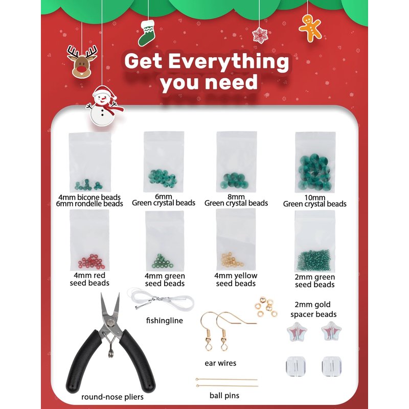 - Complete All-Inclusive Kit: Each Christmas-themed earring-making kit comes with everything you need—perfectly selected beads, wires, tools, and accessories—along with illustrated printable tutorials and step-by-step video guides, making it easy and enjoyable for all skill levels