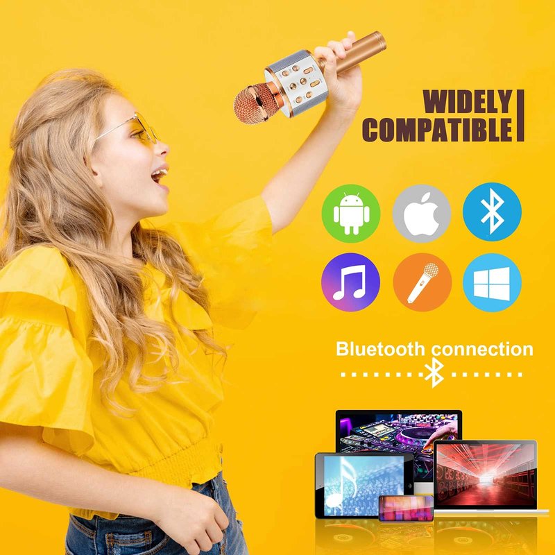 - STABLE AND FAST CONNECTION: The Bluetooth connection of this karaoke microphone is stable and fast, and it can be quickly paired with mobile phone, computer and other devices. You can turn on the Bluetooth device, and then click the pairing connection. When the prompt tone appears, the connection is successful. Kids can easily use this microphone on various occasions and enjoy the pleasure brought by high-quality music.