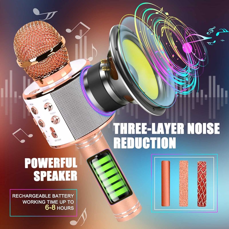 - LIGHTWEIGHT DESIGN: If you want to have a karaoke party with your kids, this microphone for kids can easily help you create a live atmosphere for parties. The portable karaoke microphone is light in design, which can be easily grasped by kids and carried around. Whether it is a birthday party, a family gathering or a singing contest between kids, this karaoke microphones can easily cope with it, bringing endless happiness to kids.