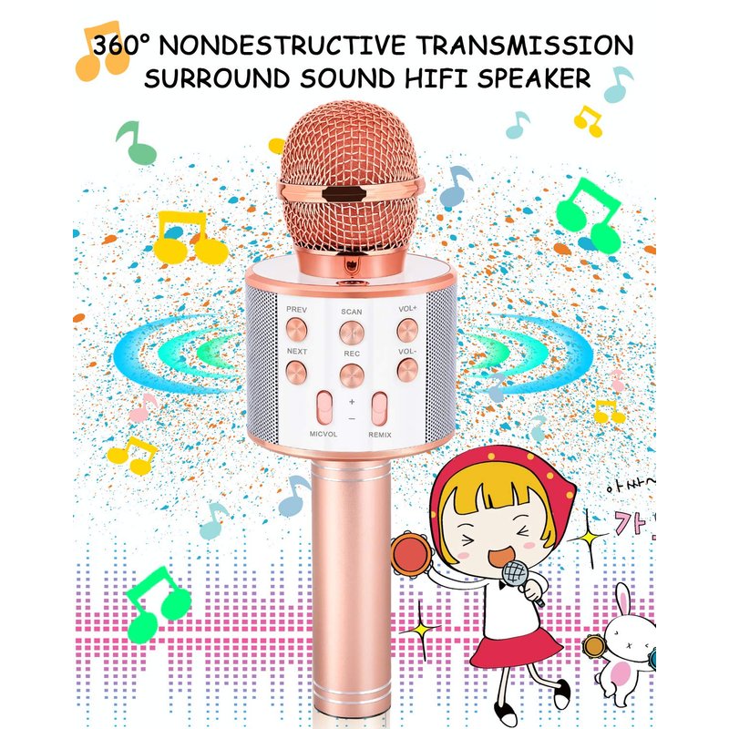 - 𝄞 Magic Sound: The karaoke microphone is interesting toys for kids bringing so much fun! Our karaoke microphone has 4 magical sounds including child voices, tough voices, male voices and honey voices. Let kids enjoy magical singing and glue to this present.