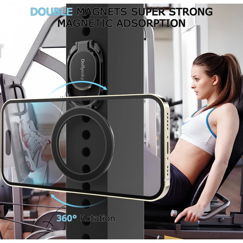 Magnetic Phone Ring Holder with Magsafe, Double Adjustable Gym Finger Ring Grip and Stand, Removable Phone Grip, for iPhone, iPad and Smartphones, Compatible with Magnetic Car Mount Upgrade MagSafe Phone Grip Holder Kickstand (iPhone & Android Friendly) Lifetime Service & One-off Free Replacement. Designed for All Phones 【Wide Compatibility - Both iPhone & Android Users Friendly】This phone grip holder can snap directly to the magnetic case for iPhone XS Max,XS,XR,X, 8+, 8,7+,7,6S+,6S, 6+,11, 12/12Pro/13/13Pro/13ProMax/15/15 Pro/15ProMax/14/14Pro/14ProMax, Plus, Mini, XR, SE or (magnetic cases) for your Samsung Galaxy S23/22/21/20 Ultra, Plus, S23/22/21/20,S10 plus/S10; Note 20 Plus/20/10 plus/10/9/8; A71/A51/A50/A10, Google Pixel 7/6/5/4a,Pro,5/4/4XL or other android phone. If using Non-Magnetic Regular iphone cases, you have to use metal ring included first (stick to your case), then enjoy the magsafe stand/ grip holder. 【360° Rotatable Stand, Right Angels】Stylish yet functional! This magnetic ring stand is 360°&280° rotatable and can be positioned at the best viewing angle for your phone; It's perfect to use as a phone stand when watching videos, taking selfies, texting, or just keeping your phone on the desk. The collapsible design also allows it to easily fit in your pocket when not in use. 【Built-in Magnetic Snap - Easy Attach and Detach】Strong built-in magnets securely attach the cell phone holder grip to MagSafe-compatible cases, while snapping your friends (magsafe-compatible car mount, metal surfaces, like refridgrators). Easily Detach for Magsafe Wireless Charging. Coated with silicone to keep device and your magnetic case scratch-free.