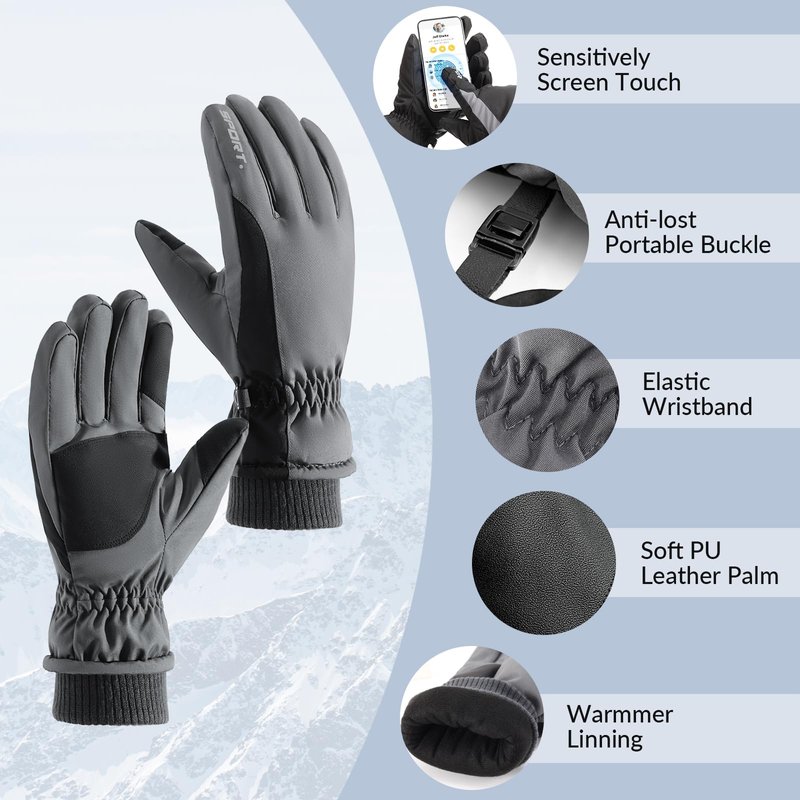 • 🎈 CREATIVE DESIGN - Snow gloves come with anti-loss buckle closure, touchscreen fingertips, reinforced digital grip palms and dry-max waterproof inserts, are all details that give you much higher dexterity and an awesome use experience.