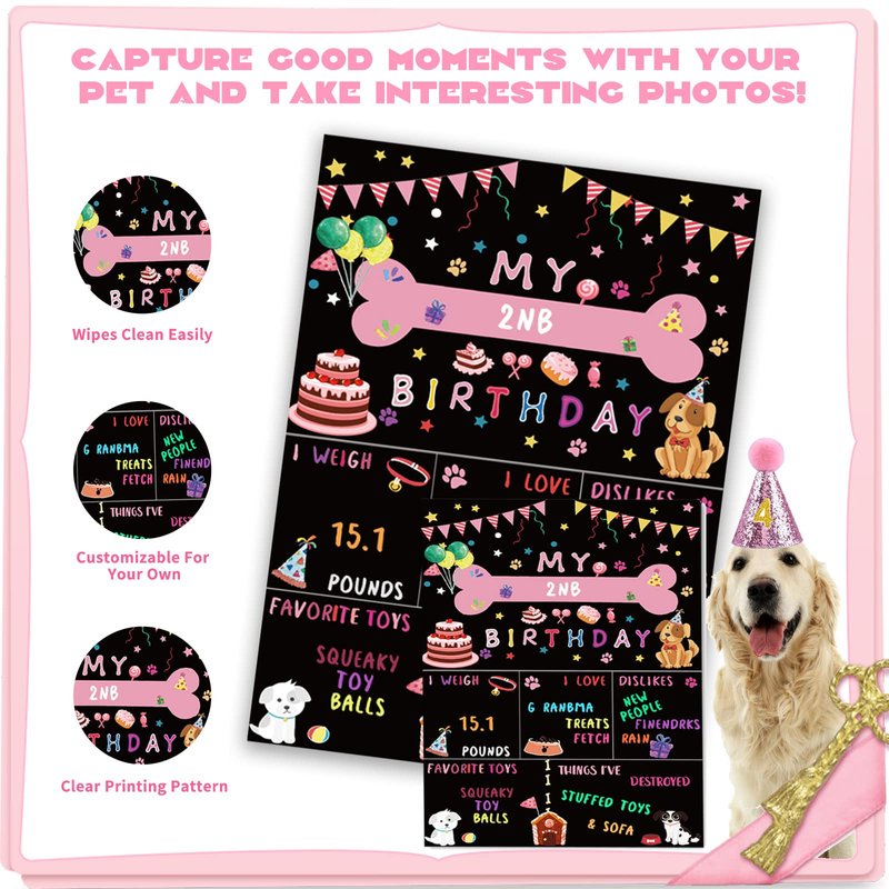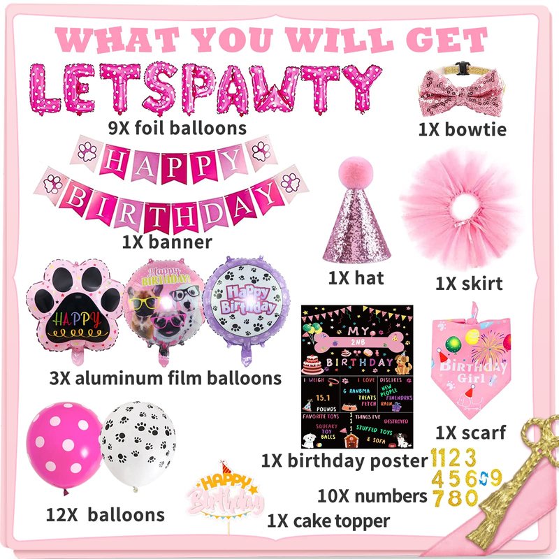 - Tailored for Your Pet: Charming dog birthday party supplies, pink is girl's favorite color, poster is designed by us, can record your dog's preferences and habits at any time and capture wonderful moments with your lovely pet. Put pink dog birthday cake topper on the cake, wearing blingbling dog birthday hat and dog tutu skirt, your dog will become a elegant princess.