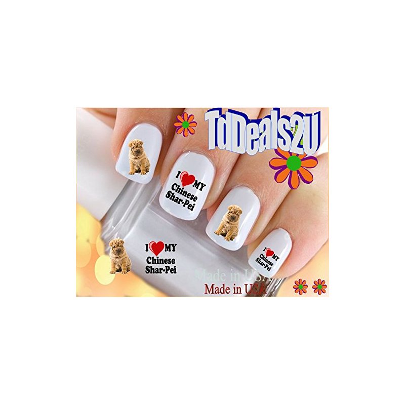 Dog Breed - Shar Pei Dog I Love my Chinese Shar Pei Nail Decals - WaterSlide Nail Art Decals - Salon Quality DIY Manicure Nail Accessories
