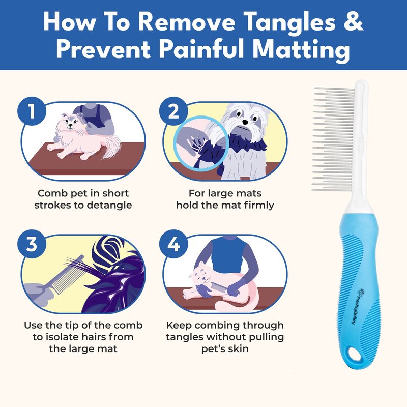 - HOW TO REMOVE TANGLES & PREVENT PAINFUL MATTING - Comb pet in short strokes to detangle. For large mats, hold the mat firmly and use tip of the comb to isolate hairs from the mat. Keep combing through tangles without pulling pet’s skin.