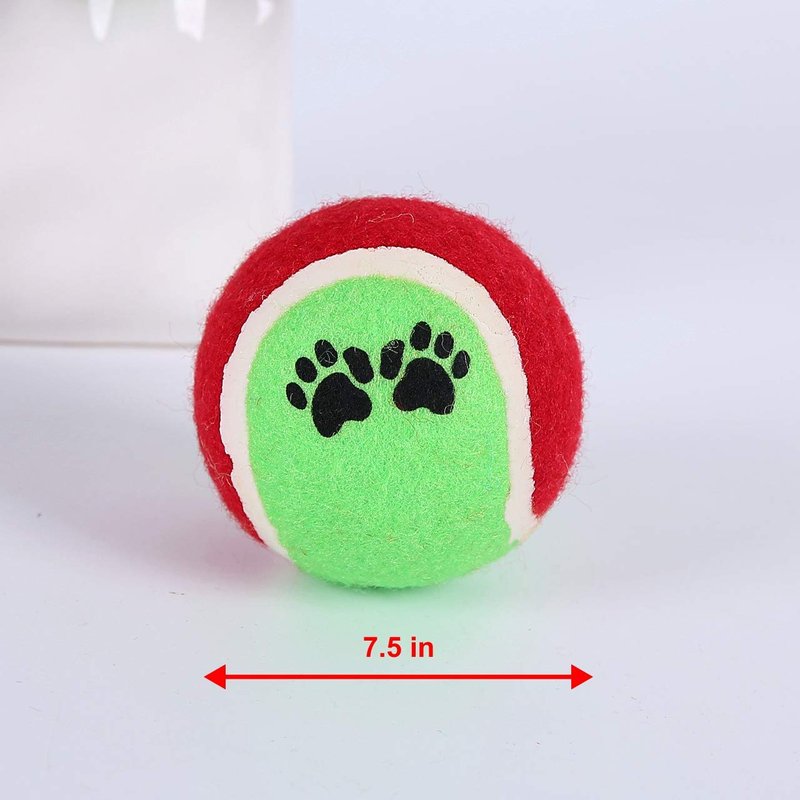 Tennis ball: This soft rubber tennis ball is perfect for playing fetch with your dog! Toss it around and keep your dog active! The diameter is about 2.56 inches.