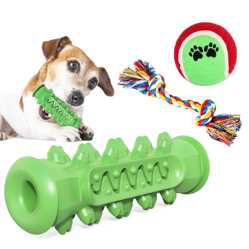 - SUPER VALUE TOY PACK: This 3-pack set includes a toothbrush stick chew toy, tennis ball, and durable cotton rope.