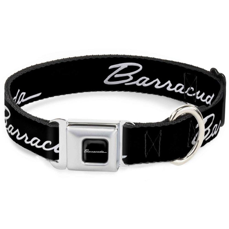 - Style: Buckle-Down Seatbelt Buckle Dog Collar - BARRACUDA Script Logo Black/Silver - 1.5" Wide - Fits 13-18" Neck - Small
