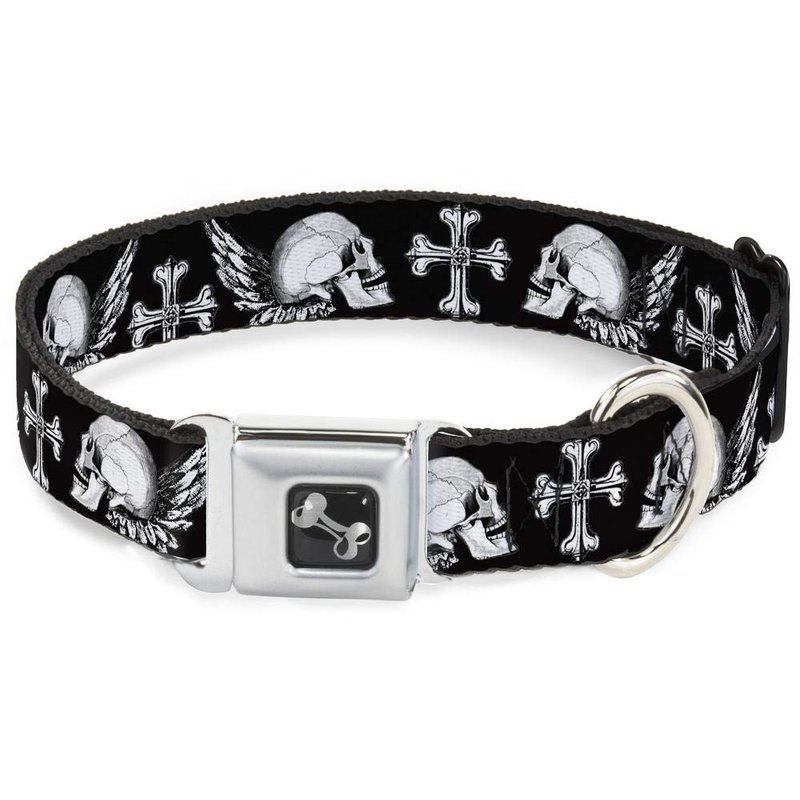 - Style: Buckle-Down Seatbelt Buckle Dog Collar - BD Skulls w/Wings Black/White - 1" Wide - Fits 11-17" Neck - Medium