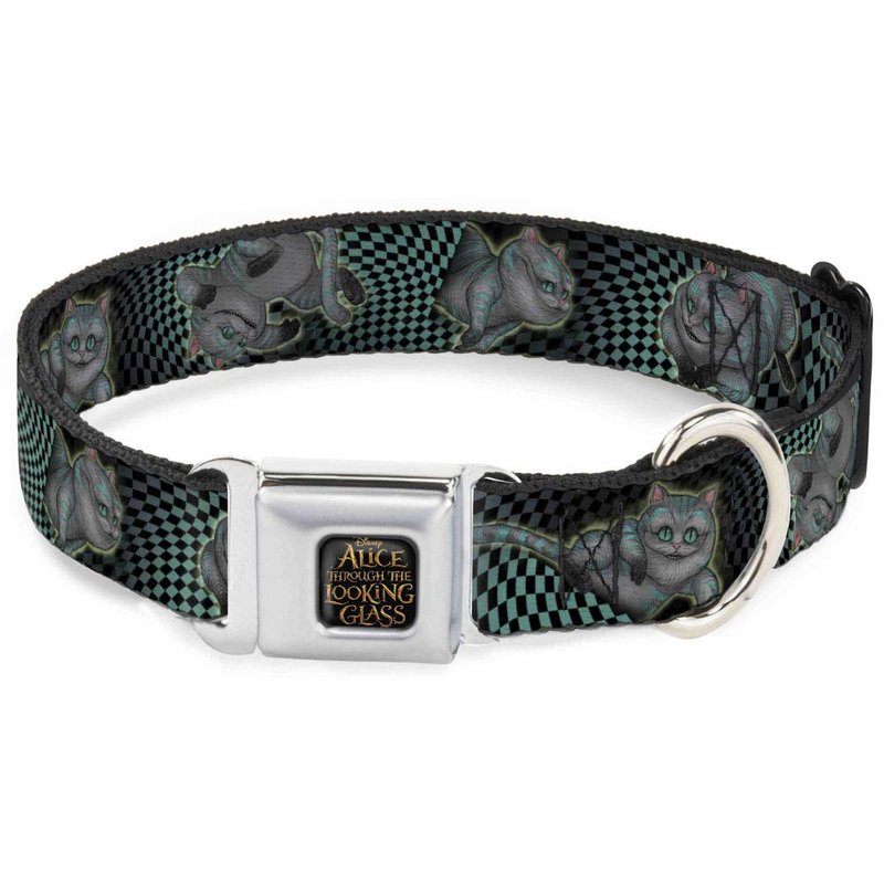 - Style: Buckle-Down Seatbelt Buckle Dog Collar - Cheshire Cat 4-Poses Checkers Teal/Black - 1" Wide - Fits 15-26" Neck - Large