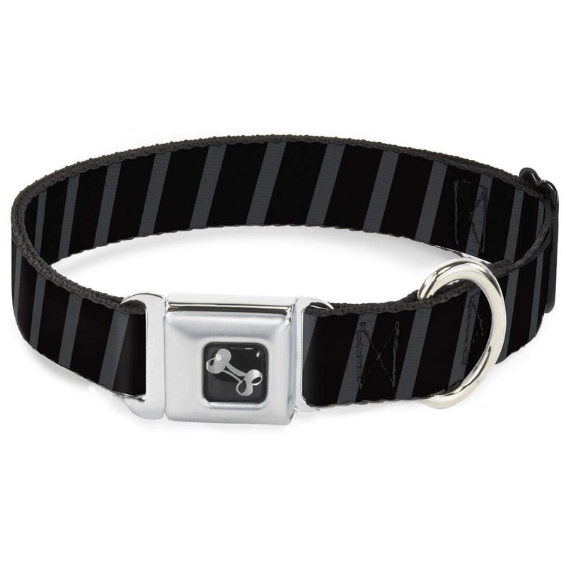 - Style: Buckle-Down Seatbelt Buckle Dog Collar - Diagonal Stripes Black/Gray - 1" Wide - Fits 11-17" Neck - Medium