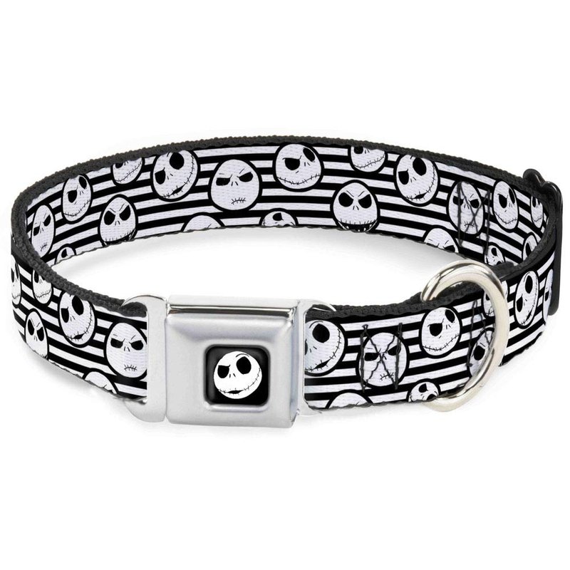 - Style: Buckle-Down Seatbelt Buckle Dog Collar - Jack Expressions/Stripe White/Black - 1.5" Wide - Fits 18-32" Neck - Large