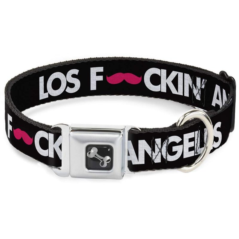 Dog Collar Seatbelt Buckle Los F*ckin Angeles Mustache Black White Pink 15 to 26 Inches 1.0 Inch Wide