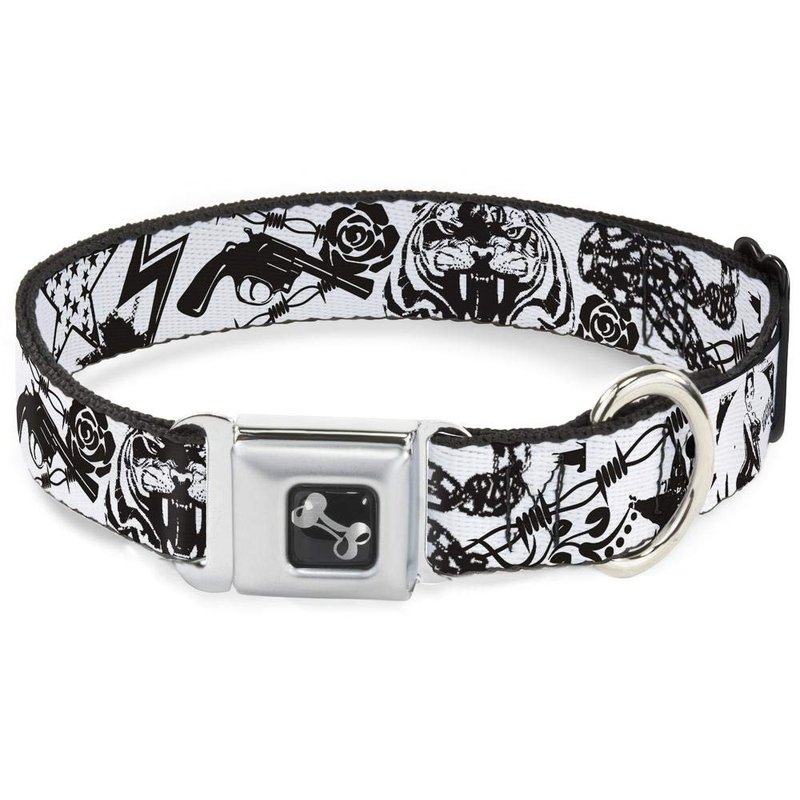 Dog Collar Seatbelt Buckle Madness White Black 16 to 23 Inches 1.5 Inch Wide