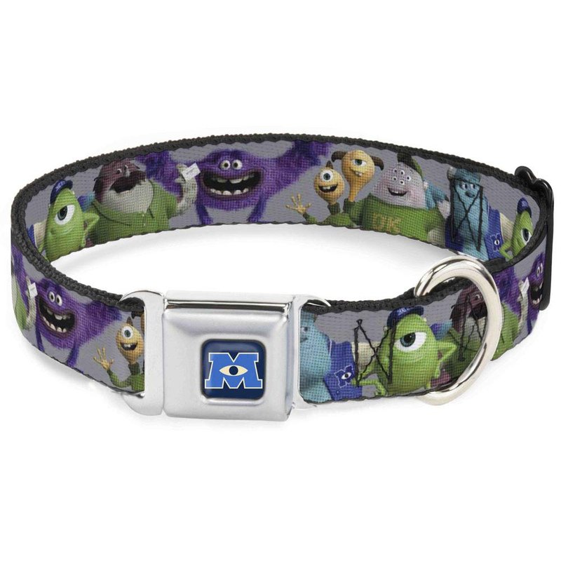 - Style: Buckle-Down Seatbelt Buckle Dog Collar - Monsters University Character Lineup Gray - 1.5" Wide - Fits 13-18" Neck - Small