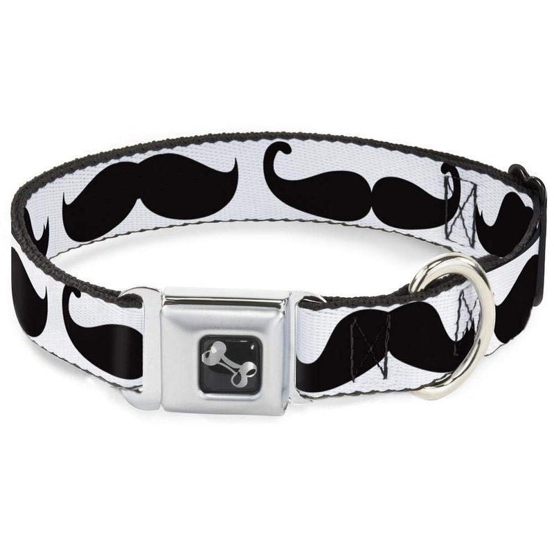 - Style: Buckle-Down Seatbelt Buckle Dog Collar - Multi Mustaches Sketch White/Black - 1.5" Wide - Fits 13-18" Neck - Small