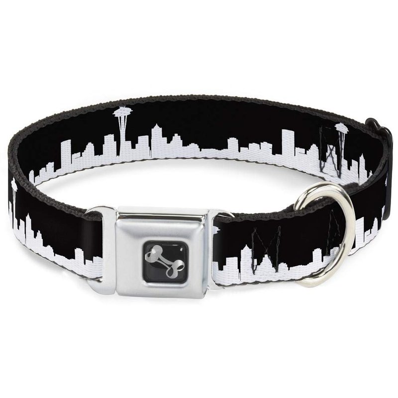 - Style: Buckle-Down Seatbelt Buckle Dog Collar - Seattle Solid Skyline Black/White - 1" Wide - Fits 11-17" Neck - Medium